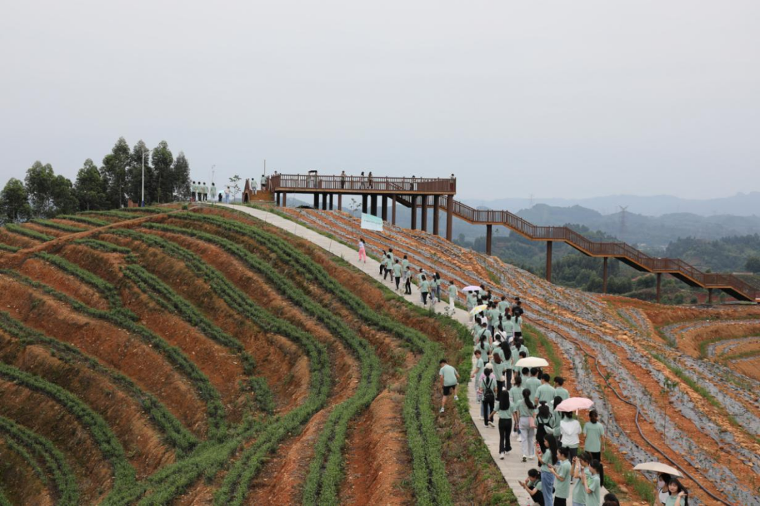 天朗气清,井研县“农文旅体研”融合发展精品园在阳光下熠熠生辉。在讲解人员的带领下,学员们去往长滩坝,爬上龙头山,听村镇历史,看乡村发展。年轻的学子穿行在田间地头,潺潺流水倒映出他们的身影,细细品味从“荒山”到“农文旅体研”精品园的发展之路,在可以预见的未来,乡村振兴的道路上定然会出现更多的青年脚步。