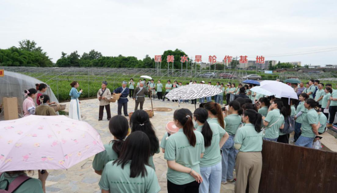惠风和畅,清凉的风吹动五通桥区冠英镇的稻田,广袤的土地上叠出绿色的浪。跟随讲解人员的步伐,学员们先后来到稻姜现代农业园区、农耕博物馆、生姜繁育和科普研学基地进行参观学习。农业技术的高速发展、“愚公移山”精神的勉励、情景剧表演中的年轻基层干部,让学员们意识到,村民正奋力实现“将中国饭碗牢牢端在自己手中”,乡村文化建设正如火如荼地进行,乡村正在为更多有志青年投身基层工作搭建更大舞台。