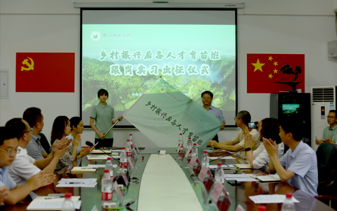 7月3日,由乐山市委组织部和乐山师范学院联合举办的第三期“乡村振兴后备人才育苗班”在乐山师范学院举行跟岗实训出征仪式。会上,乐山师范学院学生工作部、教学部、教师教育学院负责同志安排部署了实训工作,乐山市委组织部分管部领导作了动员讲话。