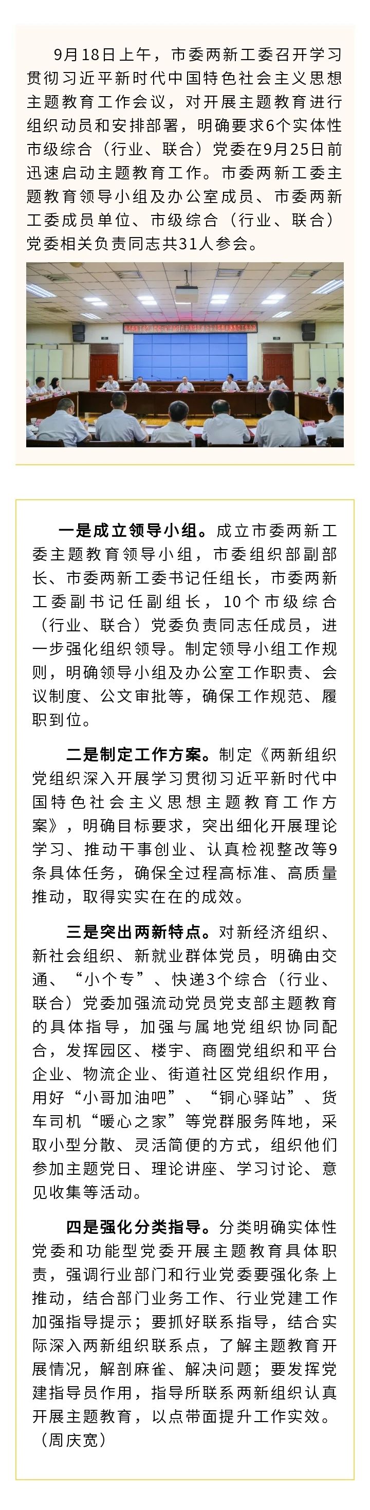 市委两新工委部署学习贯彻习近平新时代中国特色社会主义思想主题教育工作