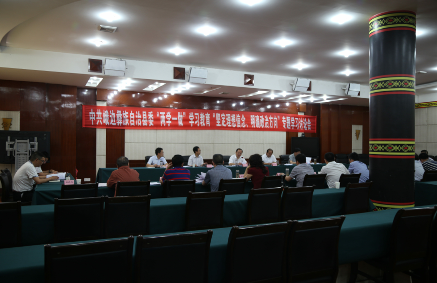 6月3日,峨边县委中心组“两学一做”学习教育“坚定理想信念、明确政治方向”专题学习讨论会在县委底楼会议室召开,会议由县委书记谭焰主持,28名县处级以上党员领导干部参与学习讨论。