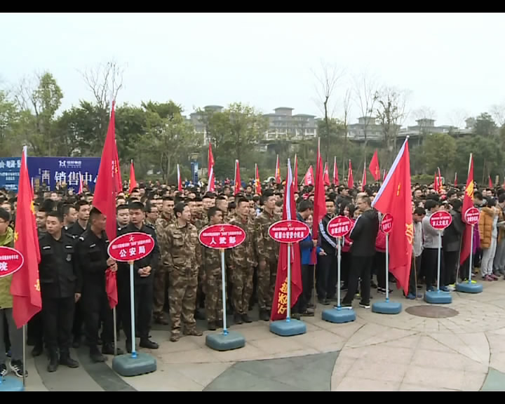 12月30日,峨眉山市第29届迎新春长跑健身活动在峨秀湖风景区举行,各级党员干部组成20多个方阵,挥舞着鲜艳的旗帜,整装待发。