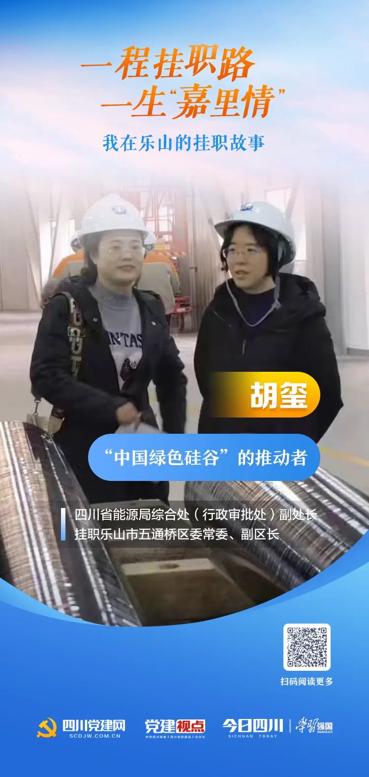 为乐山"中国绿色硅谷”建设“搭把手”,从省能源局到五通桥区挂职区委常委、副区长的胡玺不遗余力。他发挥自身专业优势和资源优势,将好方法、好经验带到乐山,在工作中坚持通过”深度调研发现问题、沟通协调了解问题、链接资源解决问题”,助力晶硅光伏产业园区保障项目的落地开工。
