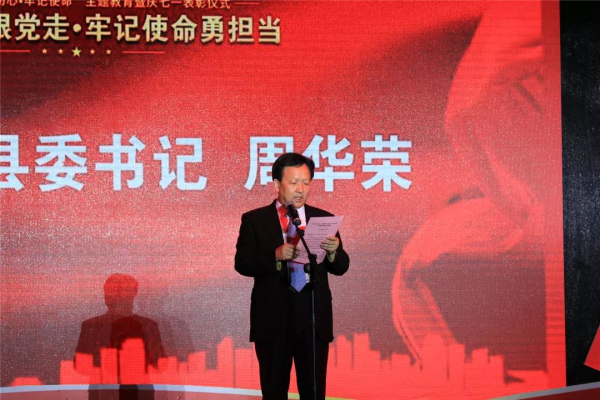7月1日晚,研溪湿地灯火璀璨、红旗招展,井研县“不忘初心·牢记使命”主题教育暨庆七一表彰仪式在这里隆重举行。市委常委、宣传部部长于丽参加活动并向获奖先进代表颁奖。县委书记周华荣参加活动并致辞。县委副书记、县长张德平,县人大常委会主任鲁志杰,县政协主席杜宏,县委副书记范中伟,县委常委朱万春、罗玉田、谷平、伍仕军、周景刚、李爱民、贺梦胜、周强等县领导参加活动。