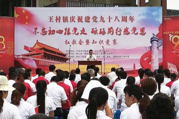 7月8日,王村镇在集体村党建示范点举行以“不忘初心跟党走,砥砺前行感党恩”为主题的党建活动。镇机关干部、村(社区)干部、党员代表、群众代表共计百余人参加活动。