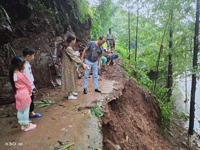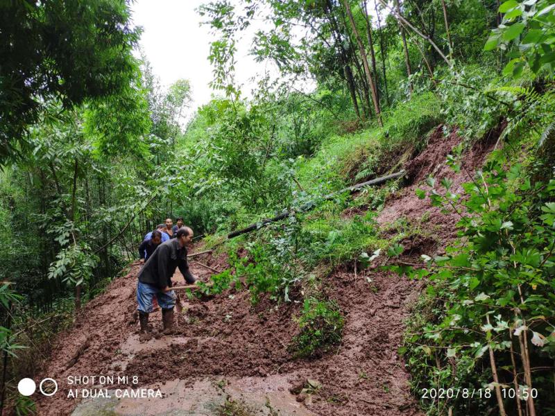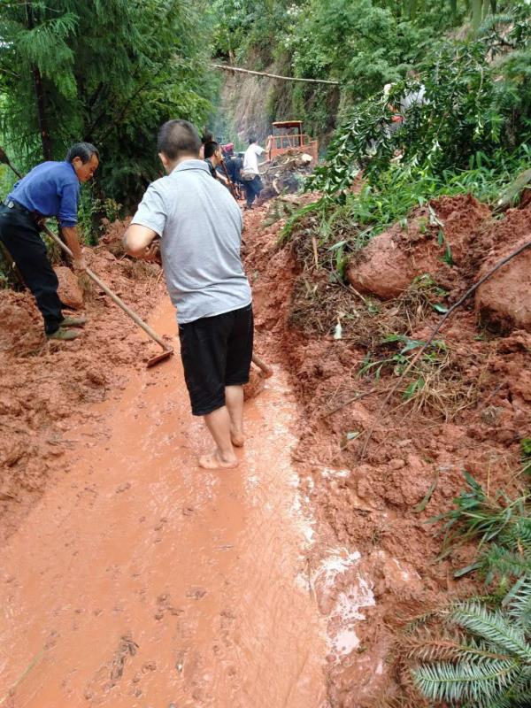 图为凤凰村党支部组织党员干部、村民代表清理山体塌方路面