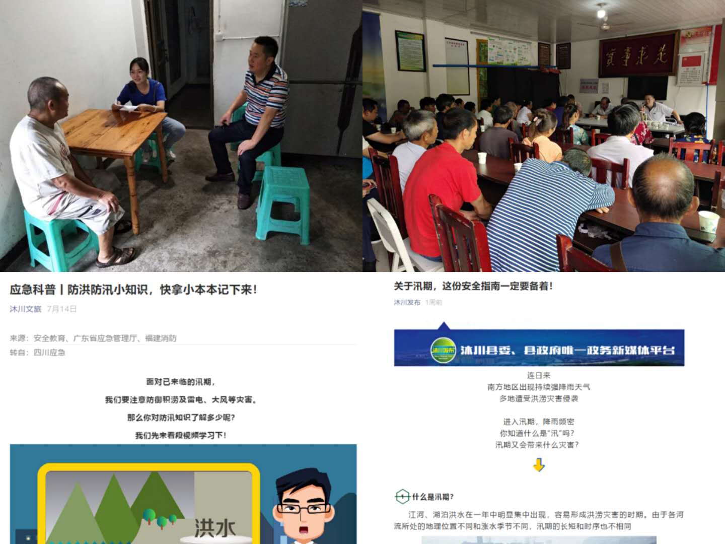 汛期以来,沐川县认真贯彻落实习近平总书记关于防汛救灾工作的指示精神,充分发挥党组织战斗堡垒和党员先锋模范作用,合力织密防汛救灾“组织网、防护网、宣传网”,切实做好防汛减灾工作,确保安全度汛。 织密防汛救灾“组织网”。通过建强组织系统防汛救灾应急体系,制定地质灾害防治和防汛预案,启动III级防汛应急响应,按照“预案到乡镇、预警到社区、责任到个人”原则,建立由县级领导联系乡镇,乡镇领导班子成员包村、机关党组织联村、党员干部联户的责任机制,推动全县各级党组织有序有力开展防汛救灾工作。积极发挥党组织和党员“两个作用”,全面实行防汛救灾坐班值班制,明确县乡村坐班值班人员,强化24小时值守,值班人员手机24小时畅通,及时妥善处置防汛救灾有关事项,压紧压实县乡村三级防汛责任,在全县形成上下贯通、左右联动的防汛工作格局。