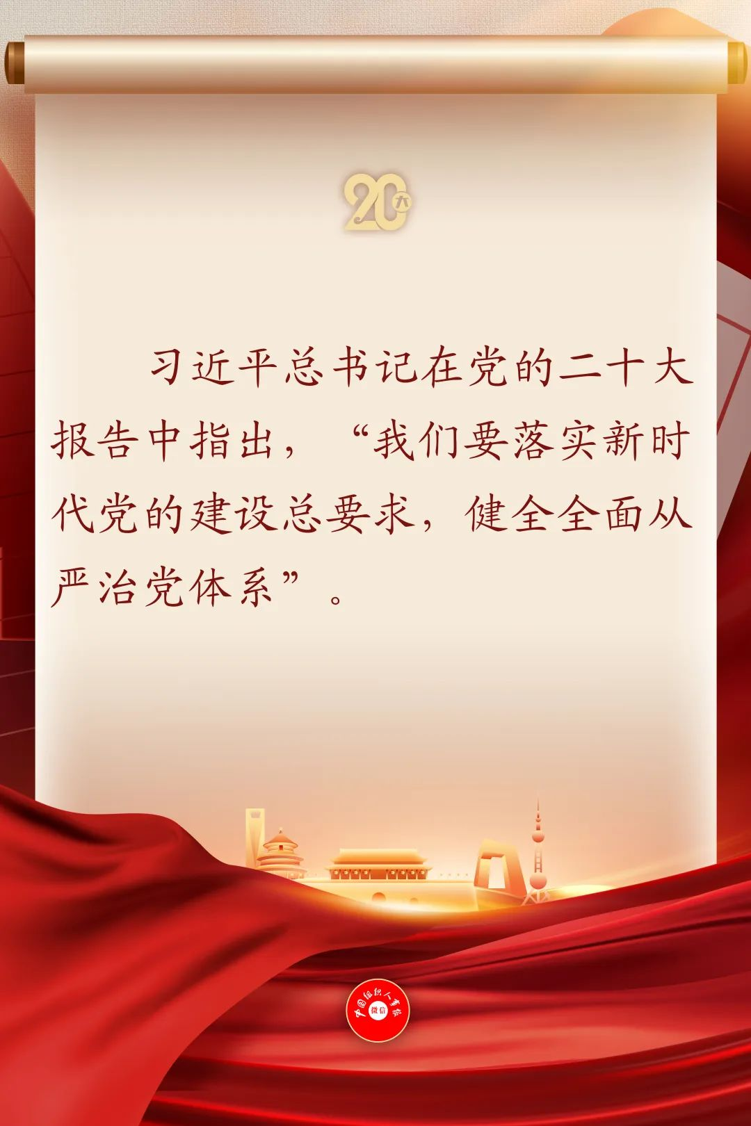 习近平总书记在党的二十大报告中指出,“我们要落实新时代党的建设总要求,健全全面从严治党体系”。党的全国代表大会报告首次提出“健全全面从严治党体系”,这是强化管党治党全面系统布局、协调高效推进的重大举措,对于坚定不移全面从严治党、深入推进新时代党的建设新的伟大工程具有重要意义。