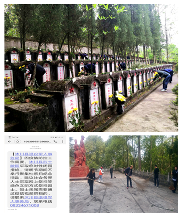 据悉,因受新冠肺炎疫情影响,沐川县烈士陵园采取临时闭园措施,160余个部门机关党支部采取预约错峰的形式开展祭扫活动30余场次1300人次,居民群众、退役老兵和烈士亲属等纷纷采取网上祭扫的形式缅怀先烈400余人次,同时利用新媒体平台制作祭扫视频9条,向社会各界传递祭扫烈士相关信息,提升网上祭扫直观感受和真实氛围,获得烈士亲属、参战老兵和社会各界的高度赞许和广泛好评。 |