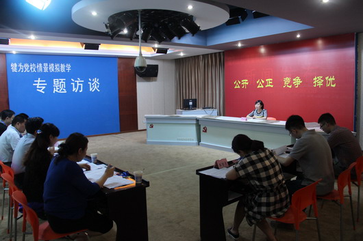 (面试现场) 综合测试采取笔试和面试相结合的方式进行,实行层层淘汰制。笔试着重测试考生政策法规、时事热点、公文写作等方面的基础知识,笔试后确定59人进入面试环节。面试实行“固定考官+流动考官”制,由1名用人单位领导担任流动考官,现场考察考生的综合能力和职位匹配度,面试成绩现场公布。根据综合测试成绩,36名考生进入新单位进行为期3个月的考察试用。 为帮助进入考察试用期的工作人员尽快融入新岗位、适应新角色,县委组织部还组织开展了岗前集体谈话。 |