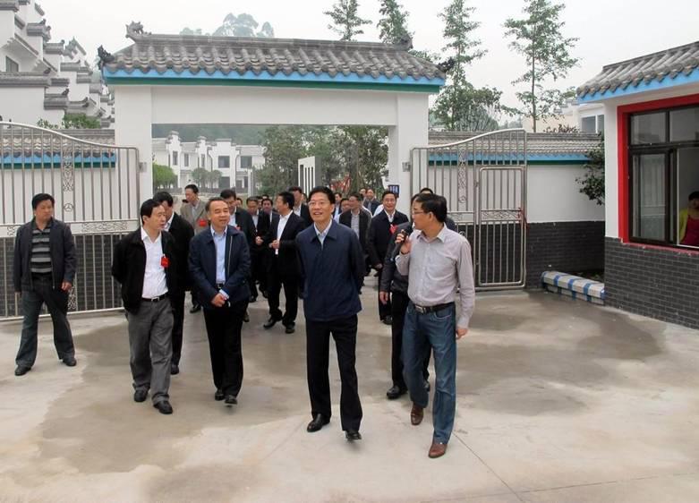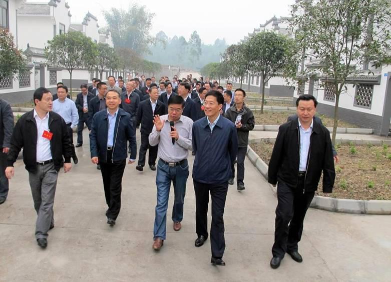 参会人员参观柳溪新居(前排右二为省委常委、常务副省长钟勉,左二为省委常委、组织部长范锐平,左一为市委书记唐坚,右一市长张彤,中为县委书记陈长明) 阳光明媚,清风送爽,古犍大地气象新。 5月9日,省委常委、常务副省长钟勉,省委常委、组织部长范锐平带领参加全省县域经济工作会的参会人员莅临犍为,参观柳溪新居和茉莉花基地。 市委书记唐坚,市长张彤,市委副书记、峨眉山市委书记罗佳明,市委常委、常务副市长田文,市委常委、组织部长张富国等市领导参加。 “柳溪新居漂亮、大气,环境宜人” 双溪乡柳溪新居一期熠熠生辉,活力无限。大片徽派建筑风貌古朴自然,格外吸引参会人员的眼球。 县委书记陈长明介绍柳溪新居建设情 况。该新居规划占地面积450亩,依托清溪古镇和万亩茉莉花海,打造集休闲、观光、体验于一体的城乡结合型和乡村旅游型新村聚居点,可聚居农户720户。 已建成的一期工程占地60亩,总投资5580万元。新居以独栋别墅为主、多层住宅为辅,拥有前庭后院。155套住房已交付参建农户。