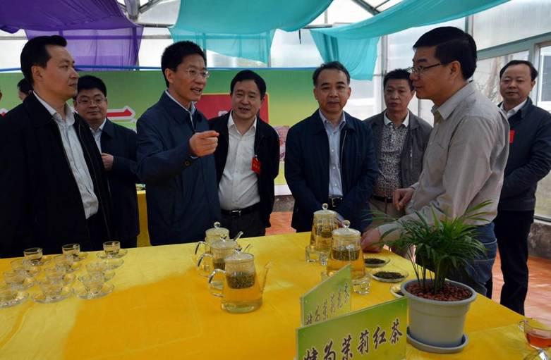 参会人员了解犍为茉莉花茶产业发展情况 |