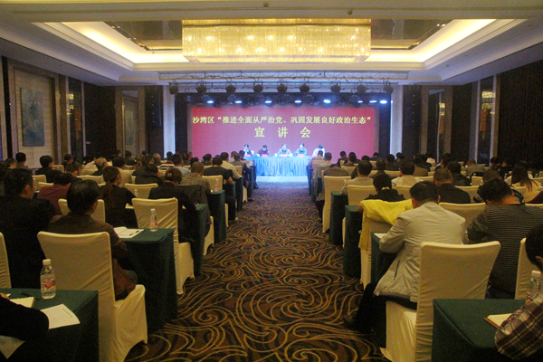 10月19日,沙湾区“推进全面从严治党、巩固发展良好政治生态”宣讲会召开。市委组织部副部长、市人才办主任、第八宣讲组组长吴勇同志作宣讲。 区委书记袁仕伦主持会议并作表态发言。区政协党组书记黄大敏,区委副书记李旭红,区委常委王华先、邱浥洋、陈红军、郑强、赵彬等区领导出席宣讲会。