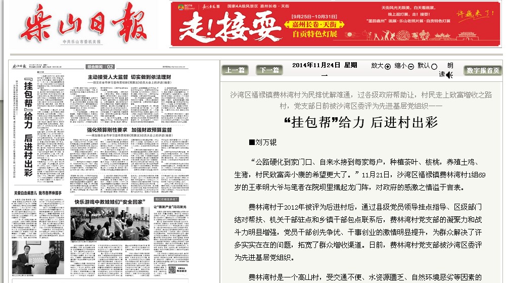 “公路硬化到家门口、自来水接到每家每户,种植茶叶、核桃,养殖土鸡、生猪,村民致富奔小康的希望更大了。”11月21日,沙湾区福禄镇费林湾村1组69岁的王孝明大爷与笔者在院坝里摆起龙门阵,对政府的感激之情溢于言表。