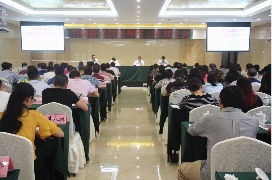 9月1日,五通桥区召开驻村帮扶工作推进会,深入贯彻落实省、市脱贫攻坚工作相关要求,对驻村帮扶工作进行再安排、再部署。区委副书记方世国,区委常委、区总工会主席蒋罡出席会议并讲话,区委常委、组织部长孙慧娟主持会议。各镇(乡)党委、帮扶干部派员单位主要负责人,29个市列贫困村驻村工作组组长、第一书记、农技员,20户以上建档立卡的非贫困村第一书记,区农业技术巡回服务小组组长参加会议。