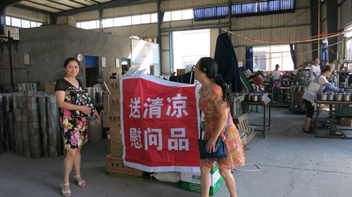 7月20日,乐山市总工会副主席兰宁,在五通桥区总工会副主席姜仁富的陪同下,带着板蓝根、人丹、霍香正气水、矿泉水等各种防暑降温慰问品深入企业开展“夏季走基层、送清凉”活动,把党和政府以及工会组织的关怀送到正在高温作业的一线职工手中。 “送清凉”活动是工会组织关心爱护广大职工和农民工的一项重要活动内容,是党的群团工作会议精神的贯彻落实,是推动改善一线职工生产生活条件、防暑平安度夏活动的一项重要举措,是开展“两学一做”学习教育的具体实践。把“送清凉”活动作为维护职工健康权益和队伍稳定的主要方式,与创建“合格职工之家”相结合,充分体现工会组织、企业党政对职工的双重关爱,进一步激发广大员工的主人翁意识和劳动热情。(通讯员:唐婷茹) |