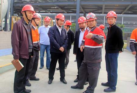 聂舸(右一)到企业检查安全生产工作